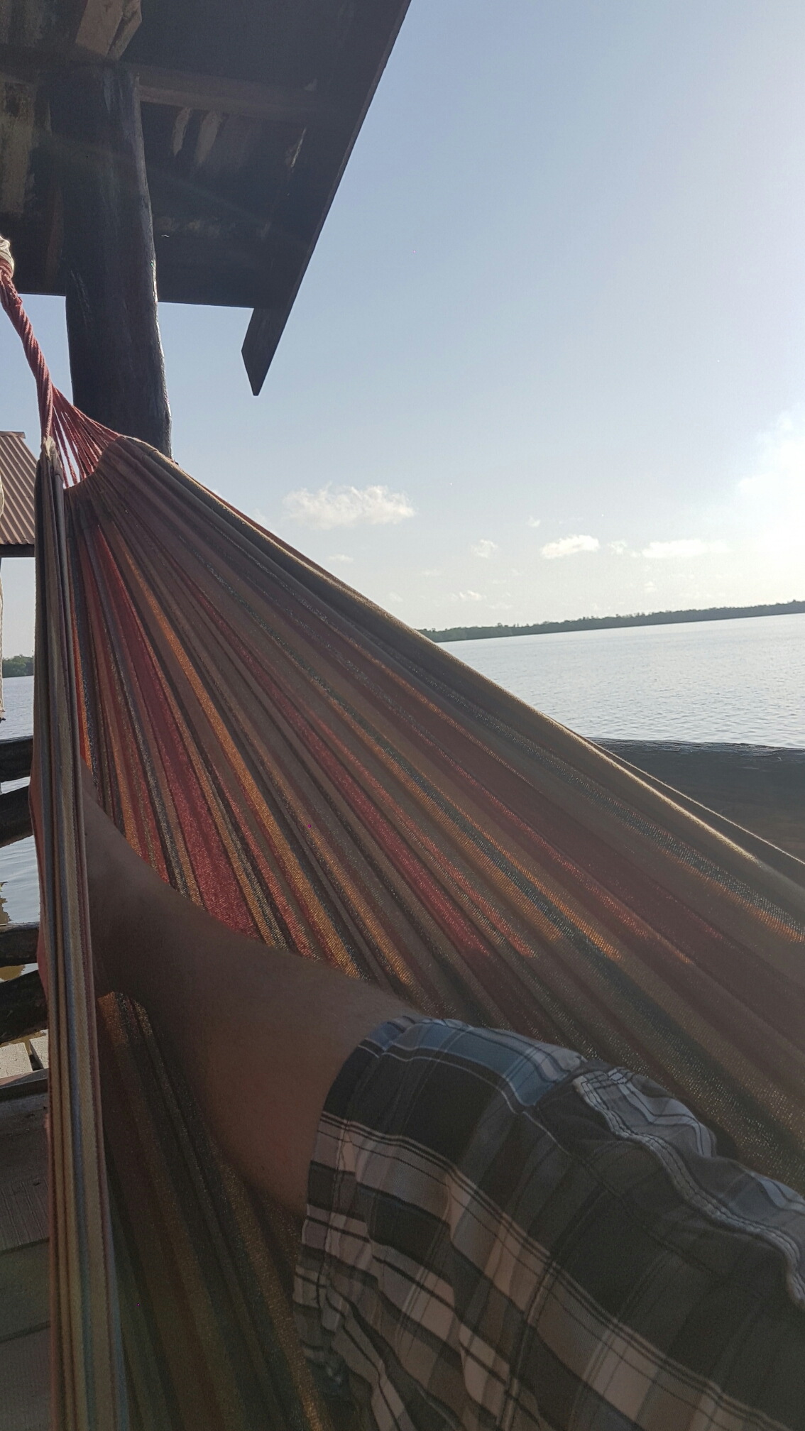 De hangmat roept mijn naam na de douche en tot de lunch, gooi ik lekker mijn ogen dicht. De lunch is op zijn Surinaams uitgebreid en heerlijk waardoor ik met een vol gevoel terug keer in de hangmat. Opnieuw sluit ik mijn ogen, maar dit keer val ik echt in slaap. Ik schrik wakker, hoor iemand mijn naam roepen. Het is Ronnie die aangeeft dat wij gaan vertrekken. Ik pak mijn tas en stap via twee andere boten de onze in.