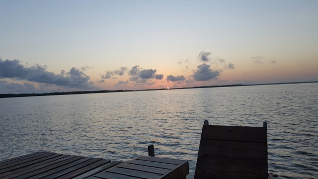 Na een verschrikkelijke nacht vol gezoem van muggen, leuk op het water slapen, is het vroeg dag. Ik kijk vanaf mijn balkon naar de lucht, helder. Sharie is ook wakker en op het zonnedek gaan we zitten. Wachten duurt lang, maar de beloning was mega. Een prachtige zonsopkomst boven het water. We hebben nog tijd voor het ontbijt en daarom doen we iets wat op mijn bucketlist stond. Kajakken!