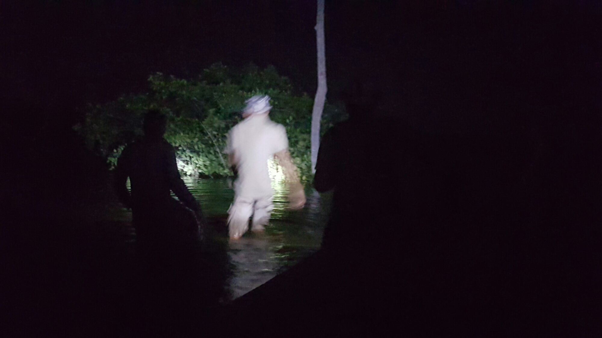 Hierna maken we ons klaar voor iets wat mij wel aanstaat. Kaaimannen spotten en hopelijk eentje tijdelijk vangen. Want na een eventuele vangst, worden ze altijd terug gezet in de natuur. Want het respect voor de natuur is heel groot bij de bewoners en vissers hier. Dus in het donker gaan we op pad, op wat blijkt de slechte avond om op pad te gaan. De volle heldere maan maakt het voor de kaaimannen makkelijk ons te spotten en onder te gaan.