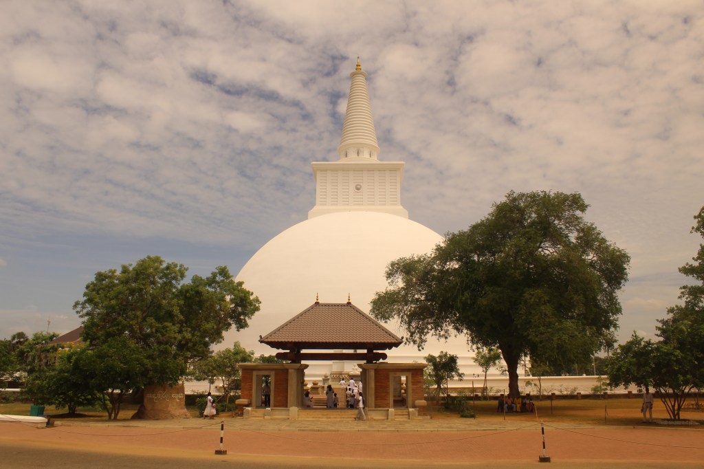 Zodra we voor de Sadahiru Seya staan is de pijn ook weg, want wat staat hier een imposant bouwwerk voor ons. Het plateau waar het op staat is aan de randen versierd met olifanten beelden. De witte kleur van de Sadahiru Seya doet op een dag als vandaag gewoon pijn aan de ogen, gezien de zonlicht zo weerkaatst wordt. We lopen er helemaal om heen en mogen in de gebouwtjes die aan de stoepa vast zitten. Hier staan meerdere altaars, boeddha beelden en ook een kristal waarin de kracht van de boeddha zit. Al die biddende mensen om je heen maakt indruk en ik moet soms gewoon even aan wat anders denken om niet geëmotioneerd erdoor te raken. De mensen hier zijn trouwens allemaal zo gastvrij. Ze vinden het alleen maar mooi dat we er zijn en hun geloof bekijken. Dat merk je echt aan iedereen, zelfs de monniken. Want als we terug willen lopen wordt onze gids aangesproken door een monnik. Wij dachten eigenlijk dat ze ruzie hadden, maar de monnik stond er op dat hij fruit voor ons ging halen. Door de tijdsplanning en op zijn knieën legt de gids uit dat hij heel dankbaar is, maar toch het aanbod moet afslaan. Maar dit laat maar zien dat wij hier als toeristen zo enorm welkom zijn.