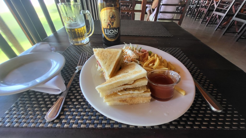 We staan rond half 9 op en gaan niet veel later naar het restaurant. Bij de receptie komen we Koos tegen en ik vertel hem dat ik vandaag niet mee ga. Mijn lichaam is vandaag het beste af zonder zon. Jammer, maar begrijpelijk vind die het. Na het ontbijt gaat Joyce weg met de groep en ga ik op de stoelen voor onze hotelkamer zitten. Ik lees een boek ‘De geheimen van de kostschool’ van Lucinda Riley. Helaas komt er een stront irritante vlieg die mij blijft irriteren. Dus ik verplaats mij naar de hotelkamer. Deze is nog niet schoongemaakt en dus moet ik er uit zodra de schoonmaker komt. Ik loop wat rond over het resort en koop een armbandje in de shop. Na nog wat chillen op de kamer is het tijd voor de lunch. Een heerlijke club sandwich gaat naar binnen in combinatie met een Lion bier. De bier van hier onder de vlag van Heineken, dus dat zit wel goed. Na nog wat gechill op de kamer komt Joyce weer thuis die vertelt wat ze vandaag allemaal heeft gedaan: